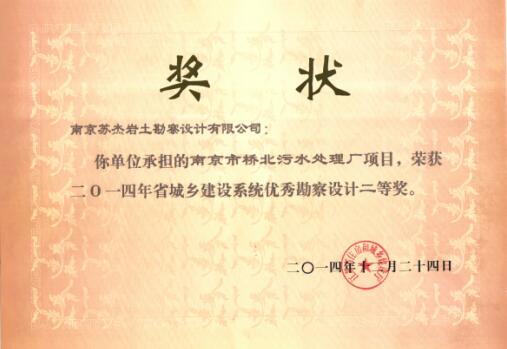 橋北污水省優(yōu)二等獎(jiǎng)
